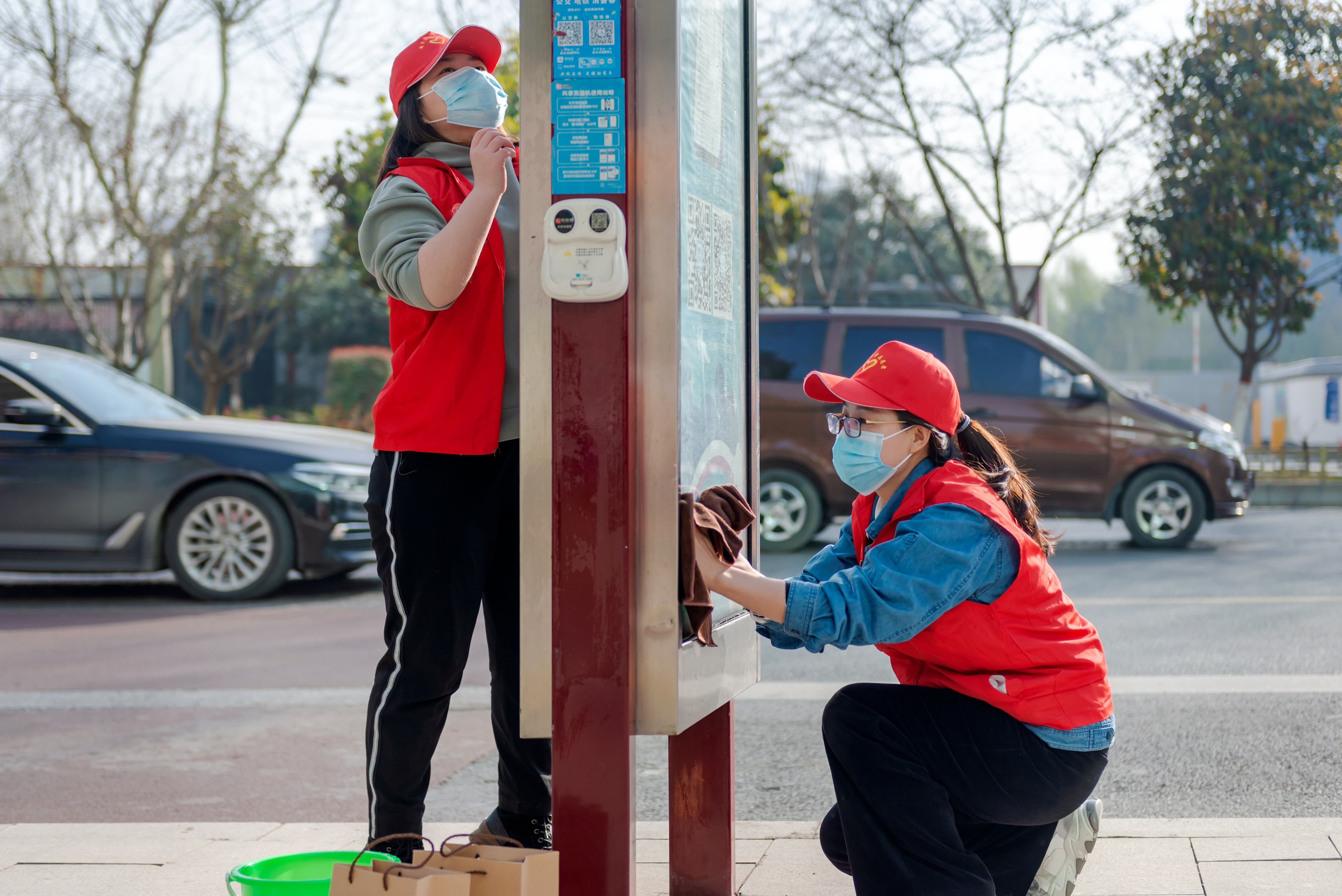 一大早,志愿者們來到未央路街頭,在環(huán)衛(wèi)工人的引導下,根據(jù)分工拿起水桶、擦洗器、抹布等工具忙碌起來,清掃垃圾、撿拾煙頭,細心擦洗公交站牌、天橋護欄、宣傳欄等公共設(shè)施,并將違規(guī)停放的共享單車整理移放到規(guī)定區(qū)域……一抹抹“志愿紅”和“環(huán)衛(wèi)橙”繪成了一道靚麗的街頭風景線。
