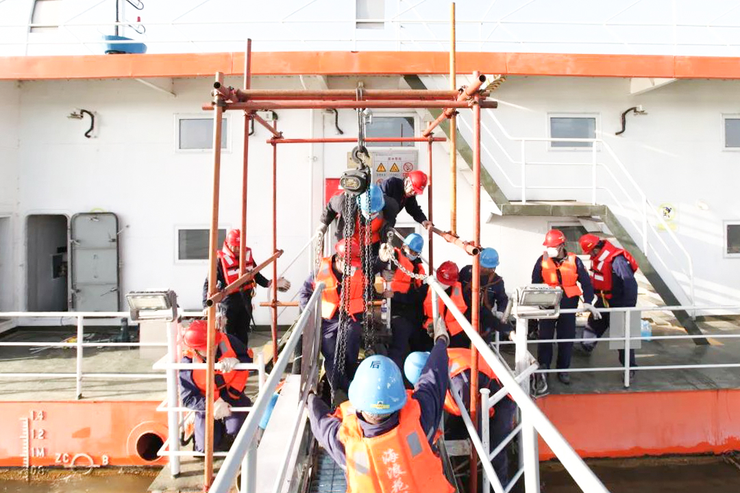 搶修再忙,安全不忘。各級(jí)管理人員和工作負(fù)責(zé)人嚴(yán)格履行安全和技術(shù)兩交底,認(rèn)真履行安全監(jiān)督責(zé)任。大家穿好救生衣、系好安全帶,肩扛手拉、牽引起吊,一點(diǎn)點(diǎn)恢復(fù)移位的取水管線。面對(duì)極端大風(fēng)天氣造成的突發(fā)事件,趙石畔項(xiàng)目部沉著應(yīng)戰(zhàn),與業(yè)主方積極溝通配合,從方案制定到協(xié)調(diào)管理再到后勤保障,各項(xiàng)工作有條不紊,僅用4天時(shí)間就完成了搶通工作,調(diào)整了取水泵船、浮箱、庫底錨鏈,增加了2、3、4號(hào)浮箱錨鏈4個(gè),新放固定鋼繩600米,有效避免斷水停機(jī)事故的發(fā)生,保障了機(jī)組安全穩(wěn)定運(yùn)行,提高了項(xiàng)目部關(guān)鍵時(shí)刻“拉得出、打得響”的應(yīng)急處置能力。