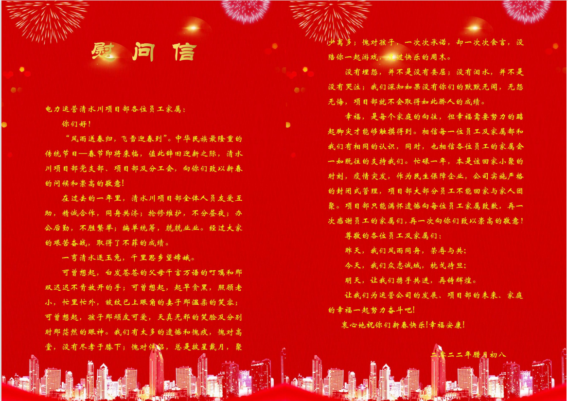 1月10日,一封慰問信通過清水川項目部員工傳遞給遠(yuǎn)方的家屬,安靜的員工群瞬間被點燃了。