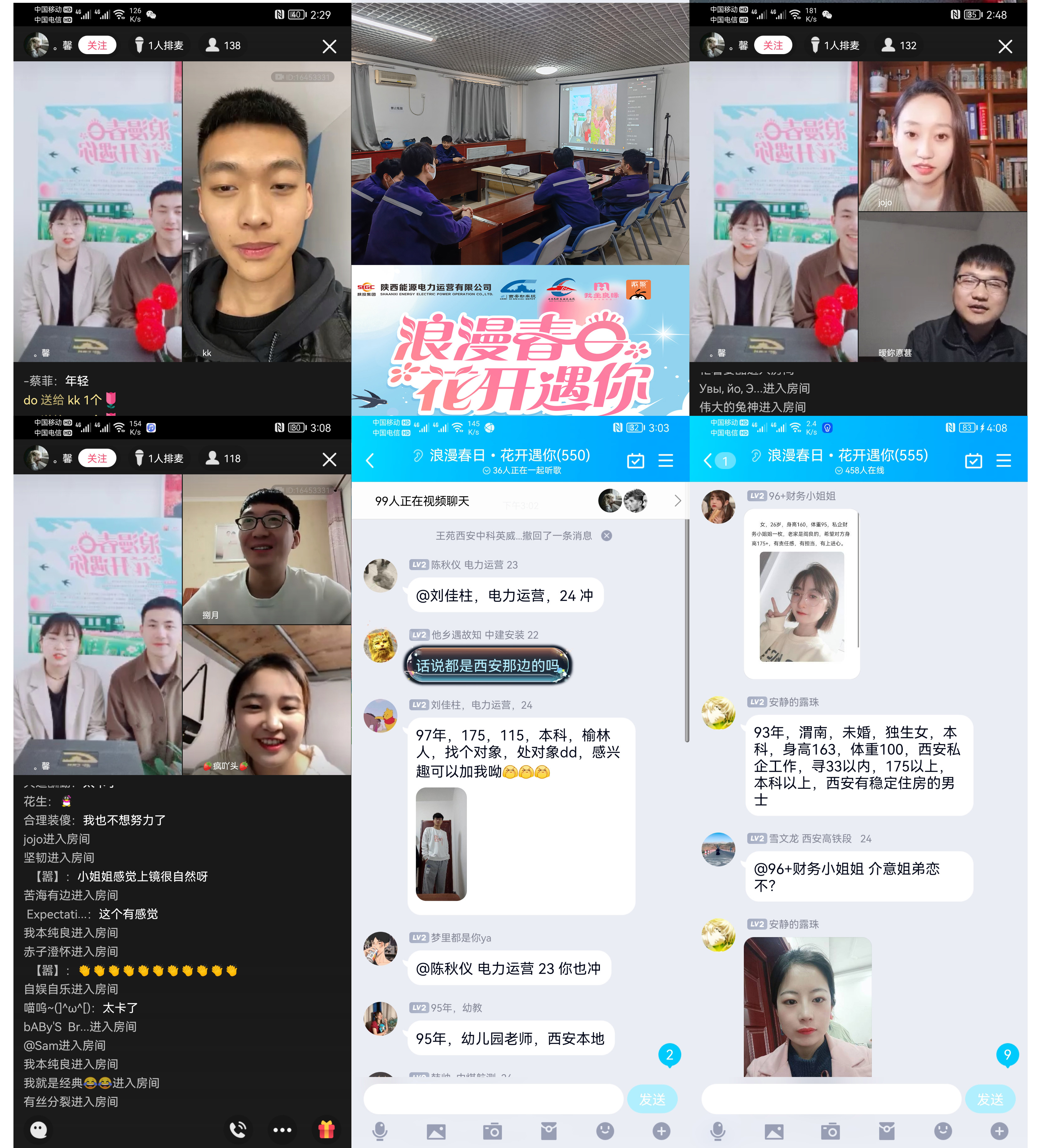 3月19日,電力運(yùn)營(yíng)公司團(tuán)委聯(lián)合中鐵局西安動(dòng)車段團(tuán)委和基礎(chǔ)設(shè)施段團(tuán)委開展了“浪漫春日·花開遇你”線上聯(lián)誼交友活動(dòng),幫助單身青年職工拓寬交友渠道,搭建良好交流平臺(tái)?;顒?dòng)邀請(qǐng)了陜西省科技廳、中科院光機(jī)所、集團(tuán)系統(tǒng)單位人民大廈、清水川能源等20余家企事業(yè)單位共550余名單身青年參加。