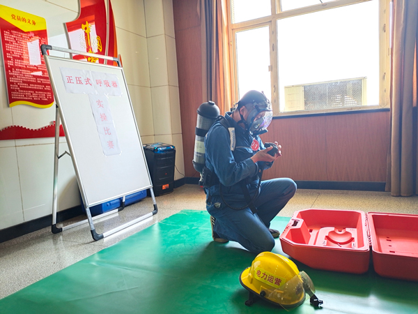 比賽開(kāi)始,各代表隊(duì)展開(kāi)激烈角逐。選手踴躍作答,評(píng)委犀利點(diǎn)評(píng)。搶答環(huán)節(jié)跌宕起伏、扣人心弦,將現(xiàn)場(chǎng)氣氛推向了高潮。正壓式空氣呼吸器實(shí)操比賽,渭河項(xiàng)目部戚華康一氣呵成,25秒完成正壓式空氣呼吸器佩戴全過(guò)程,贏得了全場(chǎng)熱烈的掌聲。