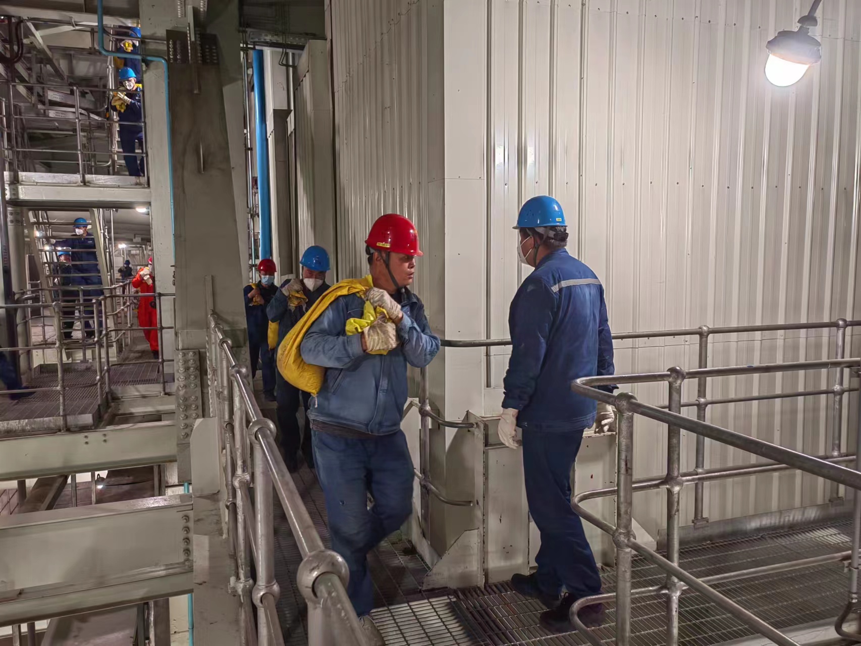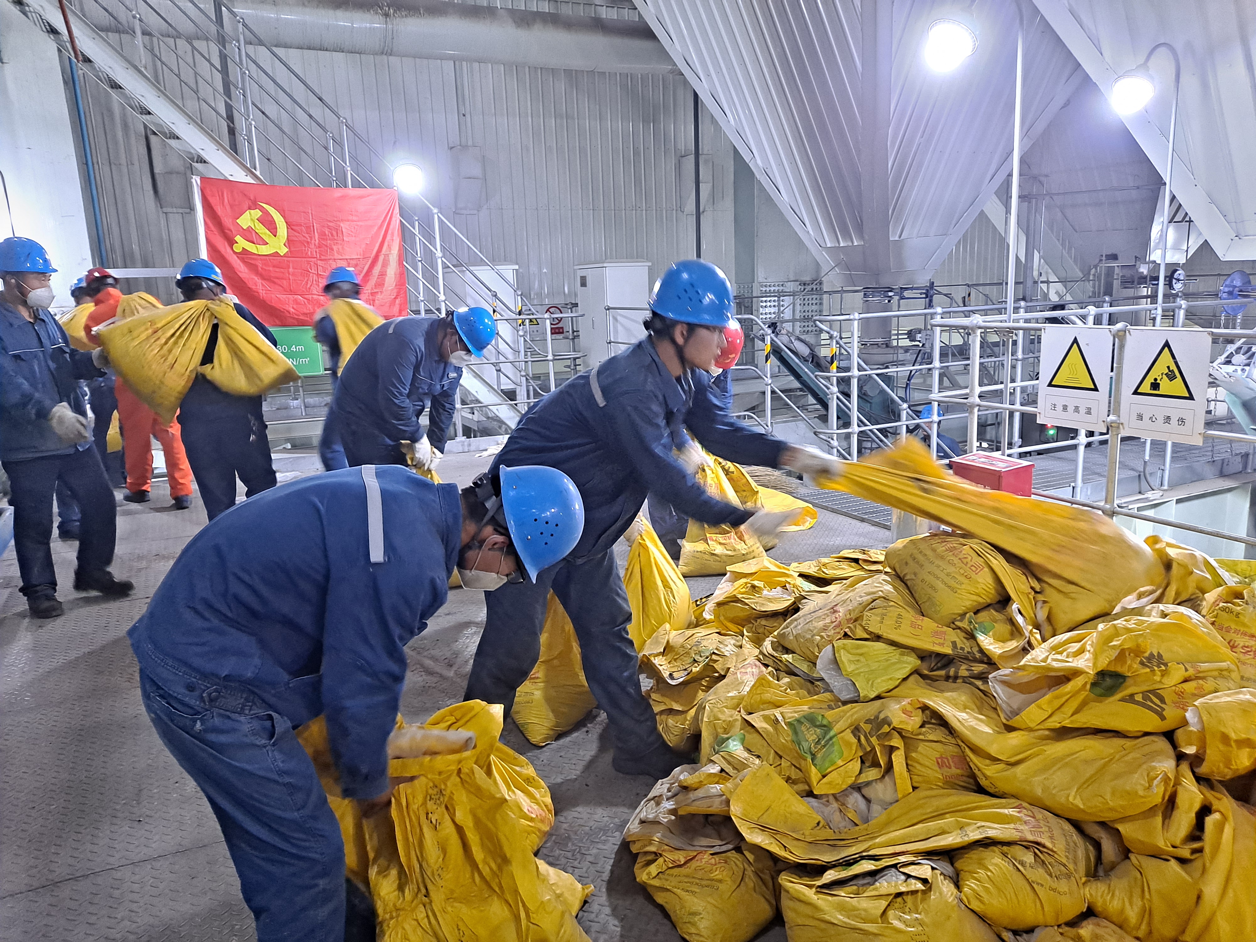 8月14日,一支由黨員、退役軍人、管理人員、青年員工組成的隊伍,趕赴鍋爐房4層進(jìn)行灰渣袋倒運,室內(nèi)高溫足以讓人汗流浹背,一千多袋灰渣足以讓平常人畏懼退縮。大家佩戴好勞動防護(hù)用品,鏟灰、掃灰、裝袋,井然有序,幾十斤重的灰渣袋,兩手一甩送上肩膀,分量輕的,自我“加壓”再來一袋。