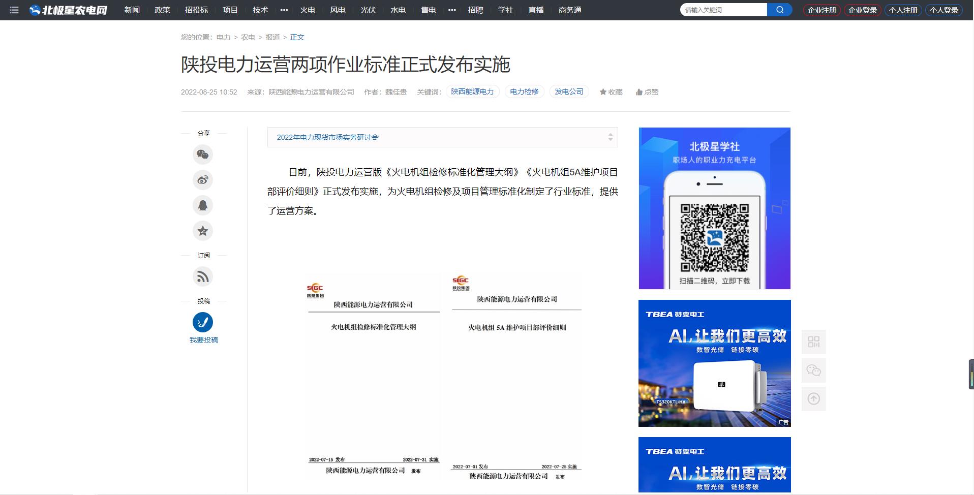 日前,陜投電力運營版《火電機(jī)組檢修標(biāo)準(zhǔn)化管理大綱》《火電機(jī)組5A維護(hù)項目部評價細(xì)則》正式發(fā)布實施,為火電機(jī)組檢修及項目管理標(biāo)準(zhǔn)化制定了行業(yè)標(biāo)準(zhǔn),提供了運營方案。
