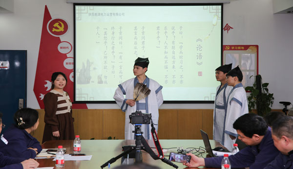 活動(dòng)現(xiàn)場(chǎng),與會(huì)人員回顧了自己工作以來的歷程,做了一次自我反省。在項(xiàng)目部自制MV引領(lǐng)下,參會(huì)人員齊唱歌曲《公民道德歌》,觀看道德模范事跡視頻,并通過青年員工自導(dǎo)自演的古今穿越情景劇演繹《論語》經(jīng)典、講述“陜投好人”邢進(jìn)故事等環(huán)節(jié),引導(dǎo)干部職工提高思想道德、職業(yè)道德和家庭美德。