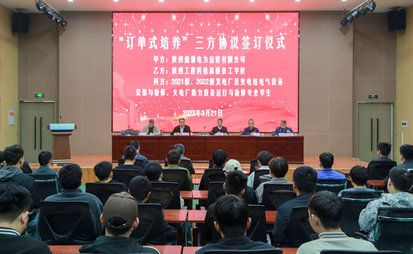 3月21日,公司與陜西工程科技高級技工學(xué)校舉行“訂單式培養(yǎng)”三方協(xié)議簽訂儀式,接受委培的4個“電力運(yùn)營訂單班”(電力系統(tǒng)班、熱電班、新能源及電氣班)共200余名學(xué)生參加活動。“訂單班”校企合作模式是公司聯(lián)合集團(tuán)內(nèi)部優(yōu)質(zhì)培訓(xùn)平臺為企業(yè)人才梯隊建設(shè)布新局、拓新路的重要舉措,是有效促進(jìn)教育鏈、產(chǎn)業(yè)鏈、人才鏈與創(chuàng)新鏈有機(jī)銜接的積極探索。陜西工程科技高級技工學(xué)校黨委負(fù)責(zé)人、校長李若飛、副校長穆廣利、趙利參加簽訂儀式。