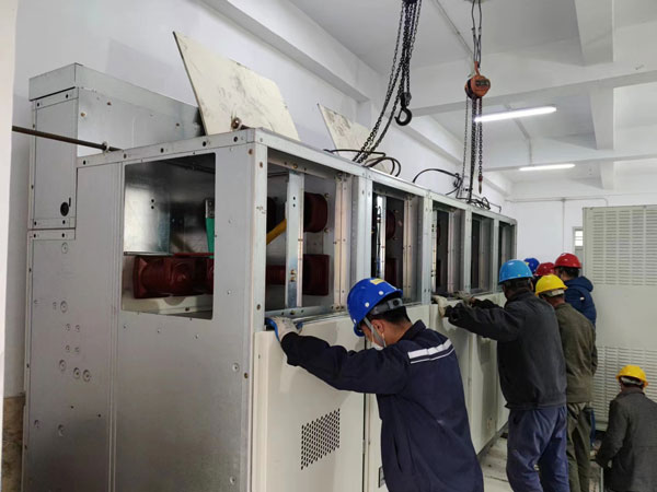 保運(yùn)最重要,寒風(fēng)何所懼。時(shí)間一分一秒地過去,不知不覺已是傍晚時(shí)分,檢修工作也進(jìn)入最關(guān)鍵的時(shí)刻。6KV輸煤段配電柜吊裝前,檢修小組做了充足的準(zhǔn)備,但即便如此,吊裝過程中小組成員還是慎之又慎,不斷相互提醒,一絲一毫地移動(dòng)著配電柜,生怕稍有不慎造成損壞。配電柜終于吊裝成功,大家長舒一口氣,緊皺的眉頭也舒展開來。地基處理完成后,工作人員第一時(shí)間完成配電柜安裝,按時(shí)按點(diǎn)、保質(zhì)保量完成了廠外6KV輸煤段配電柜沉降檢修工作。