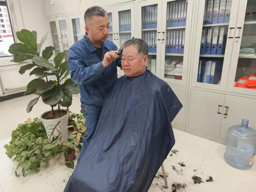 項目部職工曹文華夸道:“步師傅理的發(fā)型清爽又利落,別提有多精神了!”