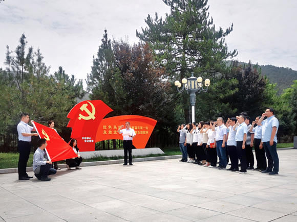 在馬欄革命紀(jì)念館廣場,全體黨員面對鮮紅的黨旗莊嚴(yán)肅立,高舉右拳重溫入黨誓詞。隨后,機(jī)關(guān)支部向7月入黨的黨員送上“政治生日”紀(jì)念卡,引導(dǎo)黨員干部牢記入黨初心,汲取奮進(jìn)力量。