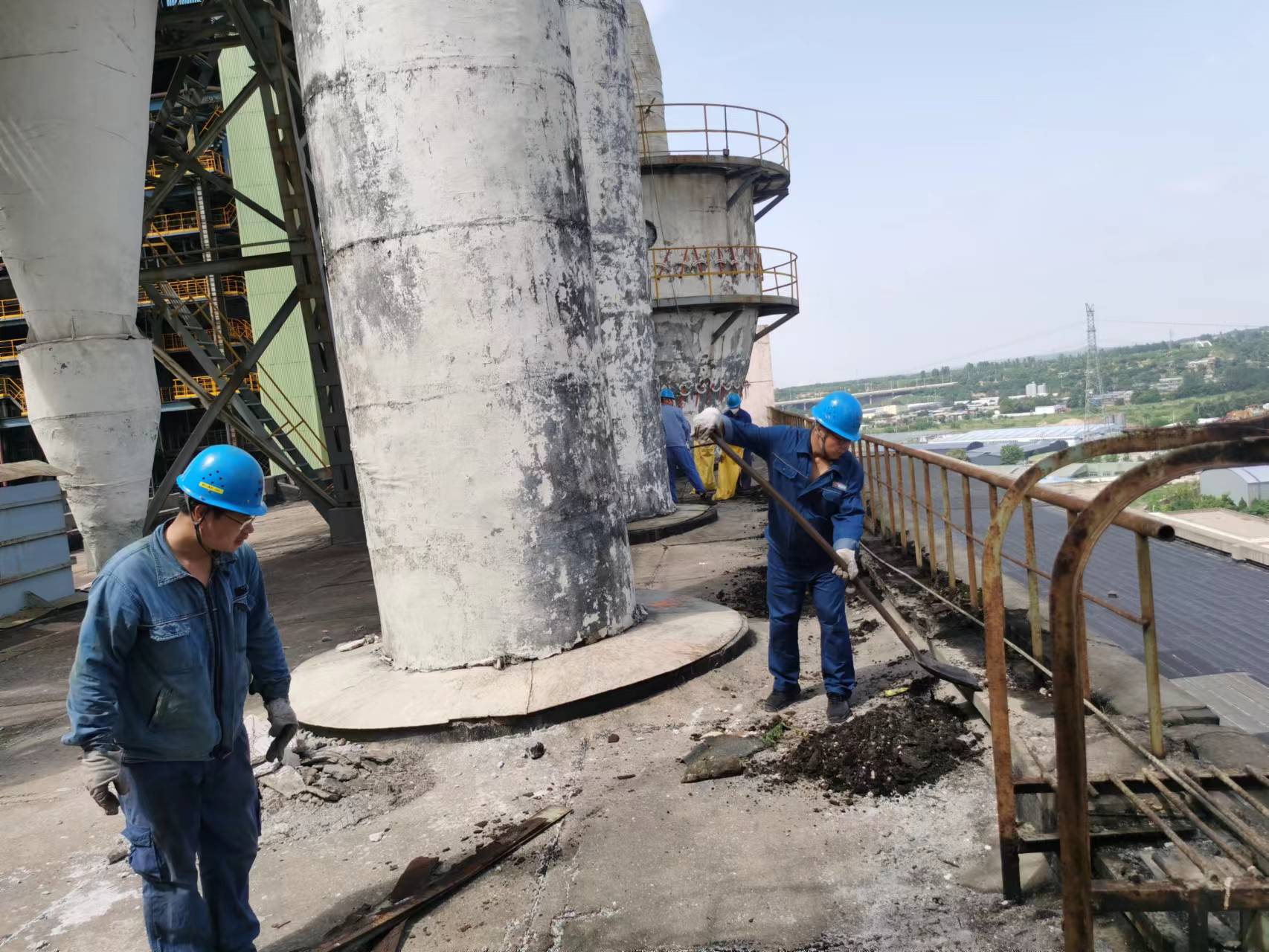 每天的專項治理行動從工作負責人交代完安全注意事項后就全面鋪開,鐵锨、掃帚、編織袋等各路“兵器”紛紛亮相,向多年堆積的廢舊材料、陳年垃圾、水泥塊等雜物“亮劍”,以“掃、鏟、撿、疏、運、抬、倒”等多種“組合拳”進行“地毯式”清除,做到治理一處、合格一處、保持一處,確保衛(wèi)生治理無盲區(qū)。灰硫設(shè)備房屋頂部管道錯綜復雜,轉(zhuǎn)運設(shè)備無法到達現(xiàn)場,每袋重達40斤左右的水泥塊全部需要人工肩扛背馱,大家不怕臟,不怕累,最終搬運完200多袋水泥塊。
