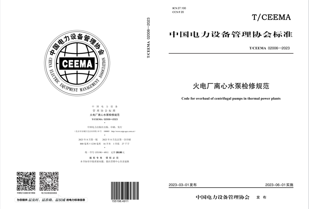 其中,公司主編的《火電廠中速磨煤機檢修規(guī)范》規(guī)定了火力發(fā)電廠中速磨煤機檢修規(guī)范,適用于燃煤機組 ZGM123 系列中速輥式磨煤機檢修、檢查質(zhì)量要求和工藝管理等內(nèi)容,通過規(guī)范維護、檢修、工藝主要部件拆卸與安裝,將“預(yù)防”和“檢查”結(jié)合起來,確保不發(fā)生因檢查不到位造成的磨煤機磨損、振動停運現(xiàn)象?!痘痣姀S離心水泵檢修規(guī)范》適用于火電企業(yè)常用多級、單級離心泵的日常維護和檢修質(zhì)量標(biāo)準(zhǔn)、試運驗收及故障處理等相關(guān)內(nèi)容。