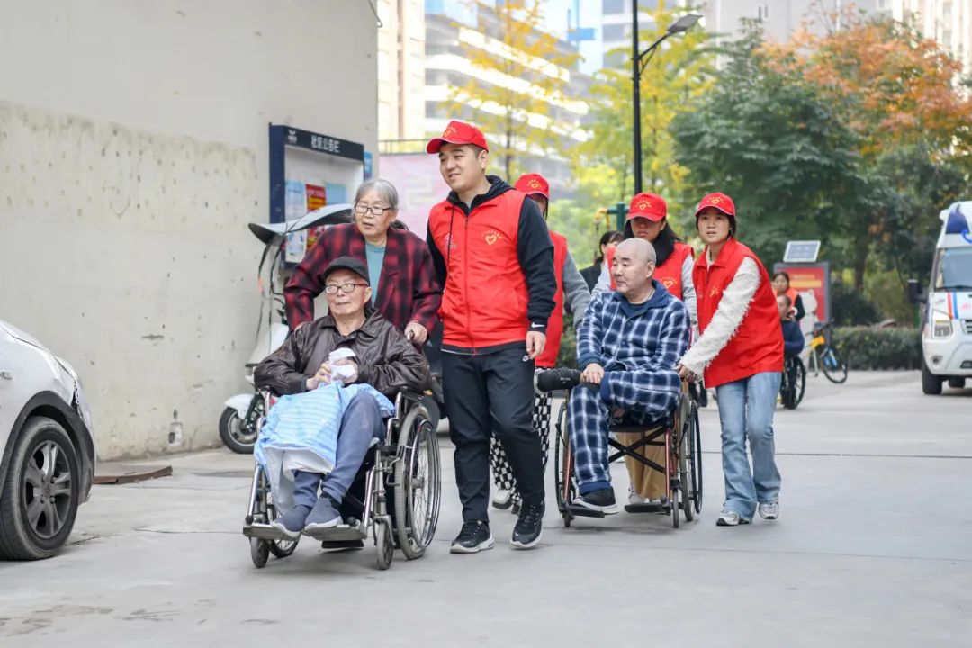 大家來到社區(qū)中心廣場,三三兩兩分工協(xié)作,搭桁架、調(diào)音響、擺桌椅、劃區(qū)域……不一會兒就將活動場地布置妥當(dāng)。在志愿者的攙扶和引導(dǎo)下,老人們有序入場。