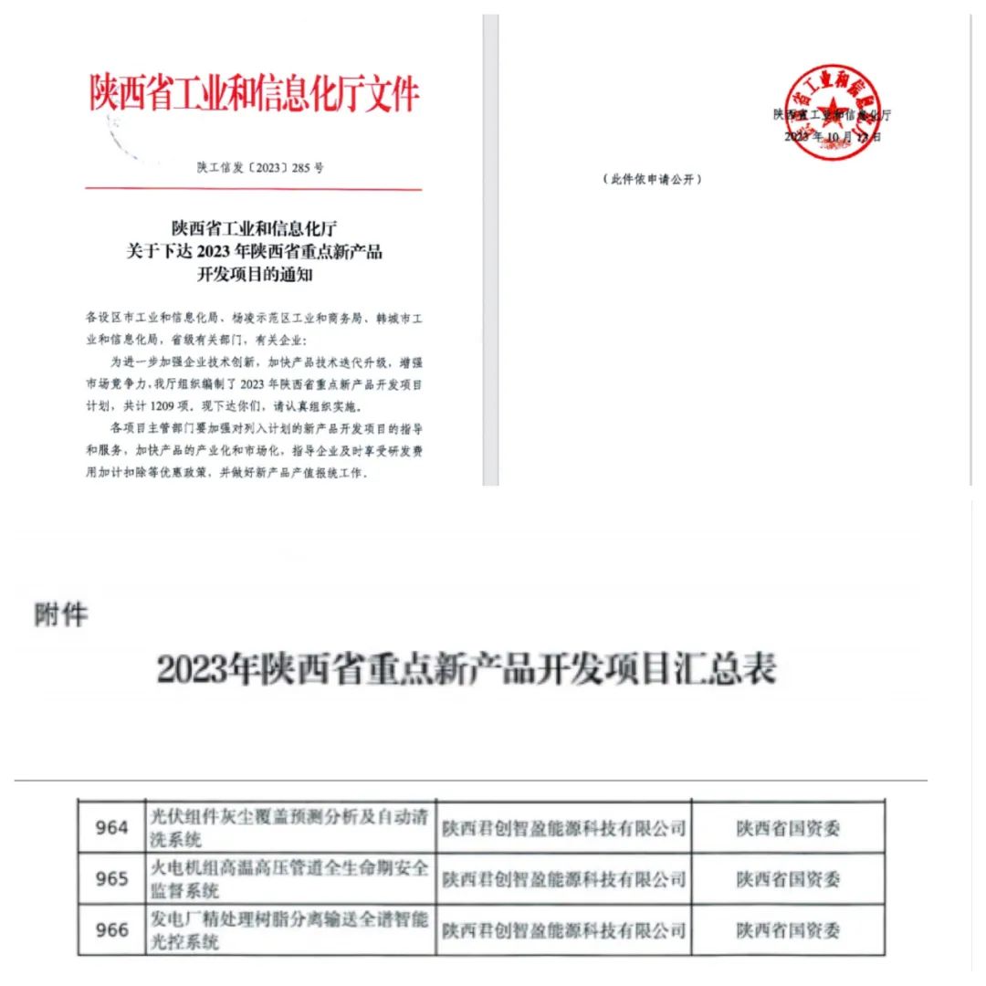 日前,陜西省工信廳發(fā)布了《關(guān)于下達2023年陜西省重點新產(chǎn)品開發(fā)項目的通知》,君創(chuàng)科技光伏組件灰塵覆蓋預測分析及自動清洗系統(tǒng)、火電機組高溫高壓管道全生命期安全監(jiān)督系統(tǒng)和精處理樹脂分離輸送全譜智能光控系統(tǒng)等3個項目入選。
