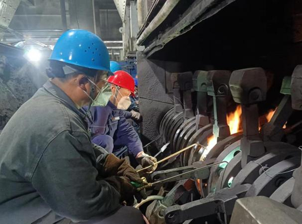搶修方案確定后,兩組人員接續(xù)戰(zhàn)斗,展開搶修。在轟鳴的機(jī)器聲中,在粉塵彌漫的細(xì)碎煤機(jī)室內(nèi),大家搶時間、爭進(jìn)度,經(jīng)過42小時鏖戰(zhàn),于12日凌晨5時許結(jié)束搶修,共完成20枚錘臂的拆除、回裝及9枚錘頭更換工作。