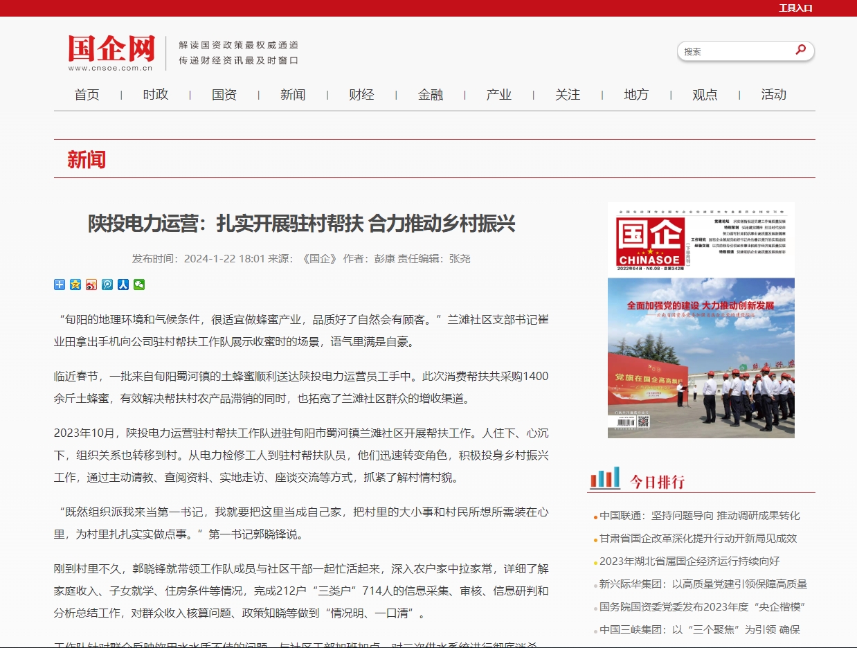 2024年,陜投電力運(yùn)營將不斷豐富幫扶內(nèi)容、拓展幫扶途徑,通過勞務(wù)輸出、教育幫扶、技術(shù)支持及志愿服務(wù)等形式,助推鄉(xiāng)村產(chǎn)業(yè)振興,主動履行國企擔(dān)當(dāng)。