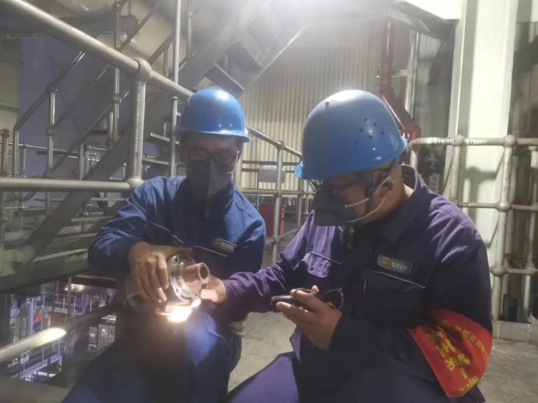 “毅飛,等離子點火裝置陽極頭檢查需要注意什么?”提問題的是有著30年鍋爐檢修經(jīng)驗的李剛強師傅,師徒倆一人負(fù)責(zé)檢查、一人記錄觀察,李師傅不時給出建議指導(dǎo),徒弟也頻頻拿出隨身攜帶的記錄本寫下“秘訣要點”。