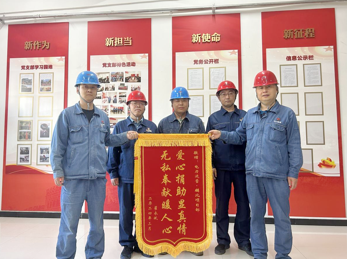 日前,麟北項目部收到了一份特殊的禮物,鍋爐班勞務(wù)人員翟永斌送來了一面印有“愛心捐助顯真情·無私奉獻(xiàn)暖人心”的錦旗,表達(dá)對項目部全體職工的謝意。