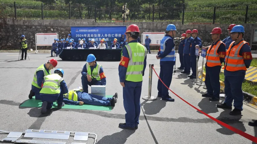 本次演練突出“實(shí)景、實(shí)員、實(shí)地、實(shí)戰(zhàn)”,結(jié)合電力檢維修作業(yè)中人身事故占比最高的高處墜落,實(shí)景模擬作業(yè)人員攀爬腳手架時(shí)發(fā)生墜落,導(dǎo)致人員骨折、外傷以及呼吸心跳停止等復(fù)雜情況進(jìn)行應(yīng)急救援。