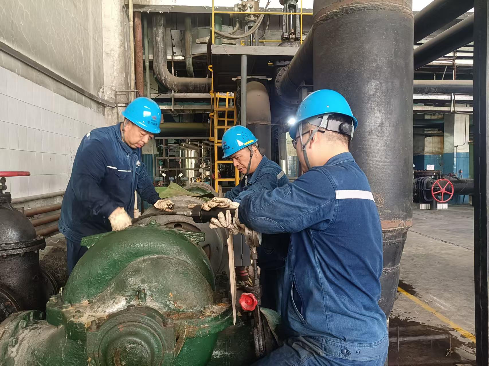 “大家都加把勁,這臺設(shè)備可關(guān)系到整個機(jī)組的穩(wěn)定運(yùn)行,必須盡快維修好!”主機(jī)班解江波說完便拿起專用工具熟練地拆卸零部件。甲凝結(jié)泵消缺作業(yè)現(xiàn)場,溫度高達(dá)40度,檢修人員氣定神閑地一遍遍盤動轉(zhuǎn)子,拿出“繡花”功夫,對凝結(jié)泵推力瓦塊逐個進(jìn)行微調(diào),來回近八個小時,工作服濕了干、干了濕,大家笑稱是蒸“桑拿浴”,但卻始終沒有停歇,一心只想早點(diǎn)讓設(shè)備運(yùn)轉(zhuǎn)起來,直到推力瓦塊測點(diǎn)溫度正常,設(shè)備運(yùn)行平穩(wěn),工作人員懸著的心才終于放下。