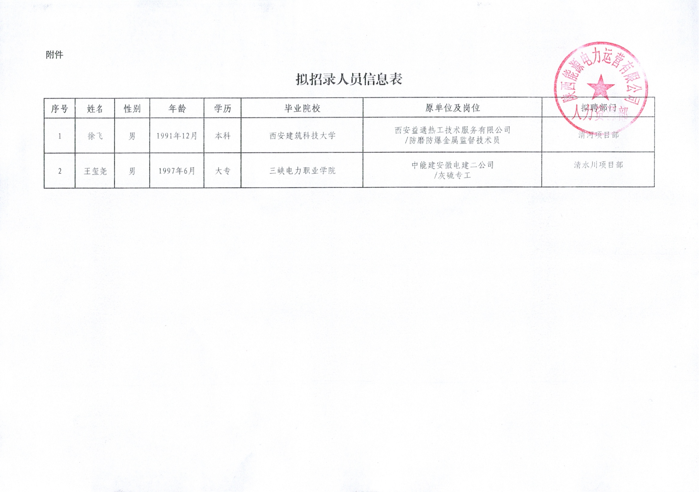按公司發(fā)展需要,近期完成了部分專業(yè)人員的招聘工作,現(xiàn)對(duì)擬招錄人員進(jìn)行公示,如對(duì)公示人員有異議,請(qǐng)?jiān)诠酒陂g內(nèi)電話或郵件至公司人力資源部反映情況。