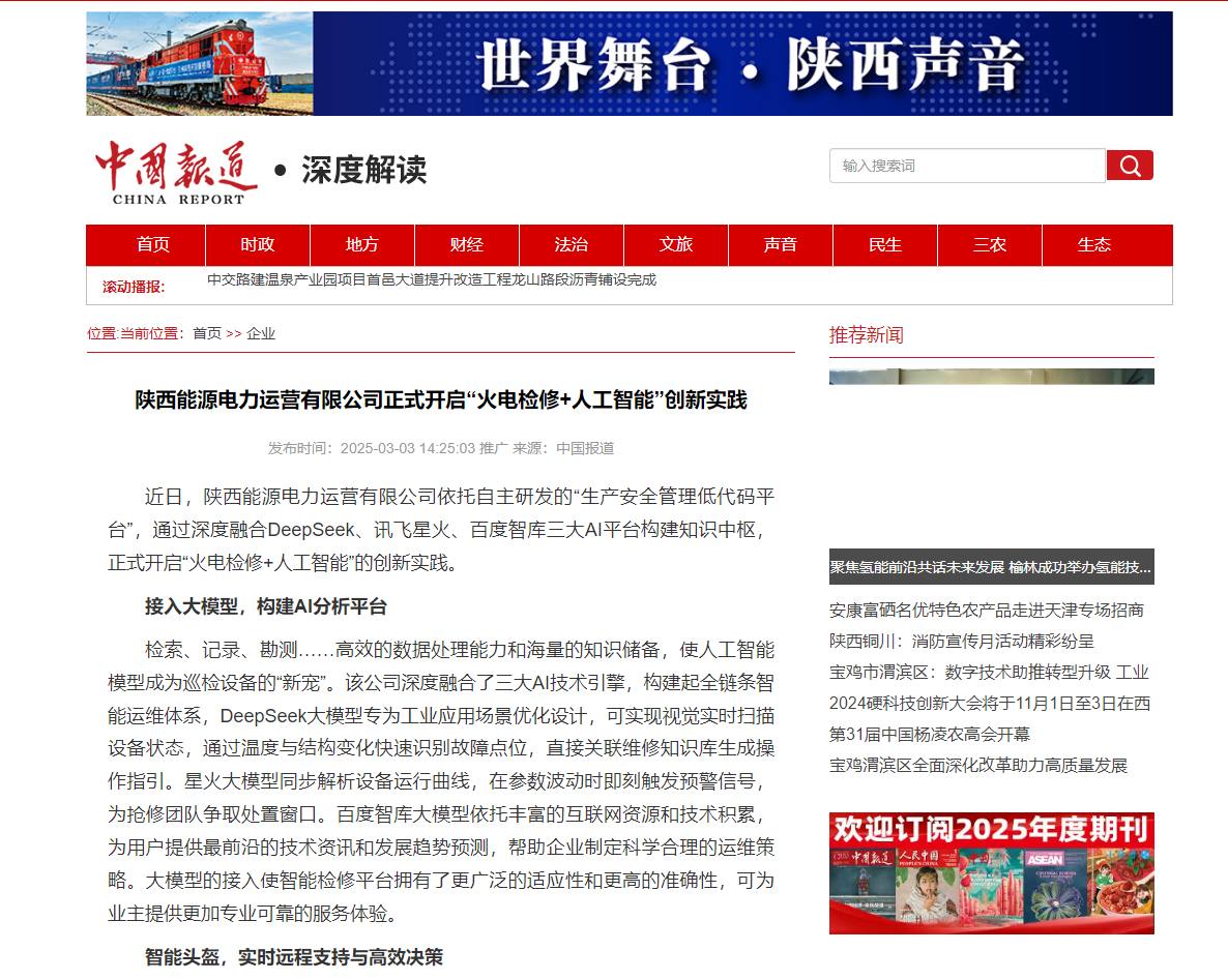 日前,陜西能源電力運營有限公司依托自主研發(fā)的“生產(chǎn)安全管理低代碼平臺”,通過深度融合DeepSeek、訊飛星火、百度智庫三大AI平臺構(gòu)建知識中樞,正式開啟“火電檢修+人工智能”的創(chuàng)新實踐。