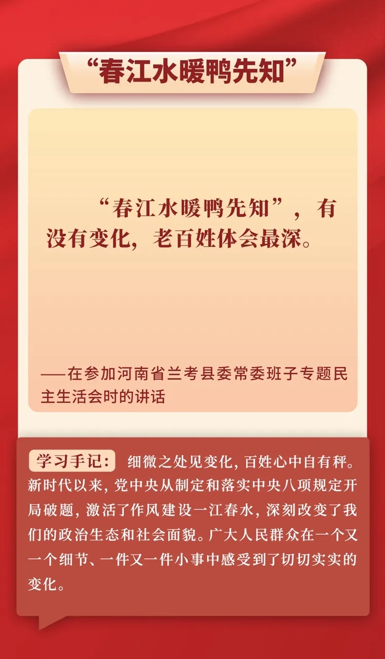 “問渠那得清如許?為有源頭活水來?!标P(guān)于作風建設(shè),習近平總書記常引用各種古語典故,有的從警示層面講危害,有的從倡導(dǎo)層面談踐行,旁征博引、畫龍點睛,把古人智慧化用于作風建設(shè)的當代實踐,給人以思想啟迪、靈魂洗禮。