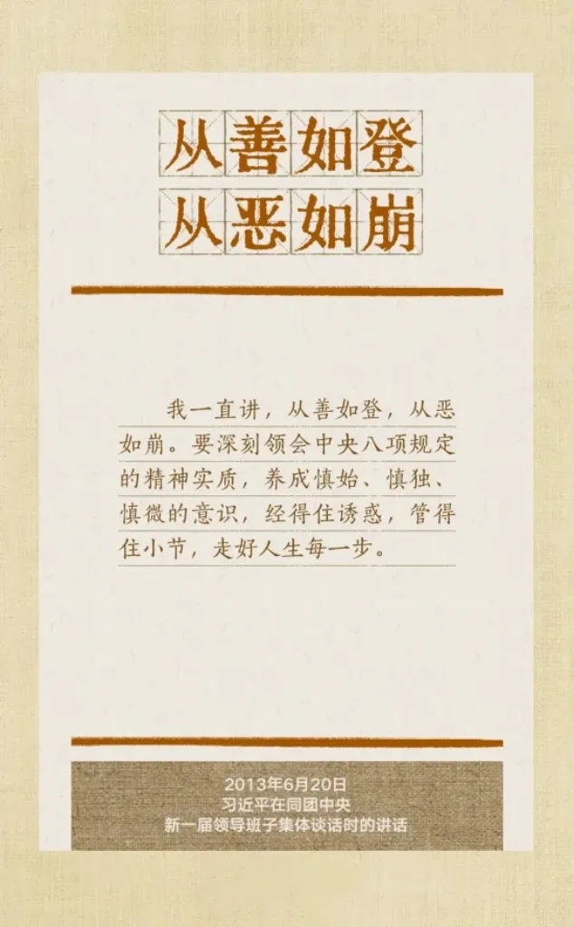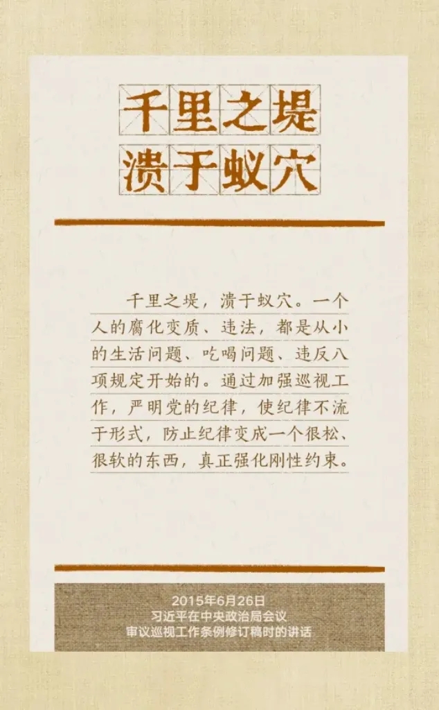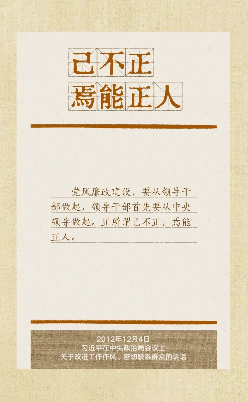 黨的十八大以來,習(xí)近平總書記多次就抓好黨的作風(fēng)建設(shè)、貫徹落實中央八項規(guī)定精神發(fā)表重要講話,作出重要批示,提出明確要求?!皼]有規(guī)矩,不成方圓”、“己不正,焉能正人”、“盡小者大,慎微者著”······總書記引用的這些古語耐人尋味。
