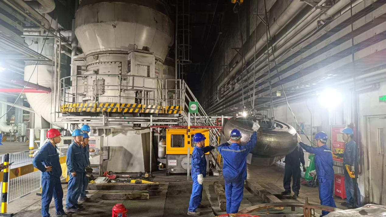 設備檢查過程中,磨輥徑向油封漏油隱患意外“現(xiàn)身”,項目部立即啟動“以修代訓”方案,組織各類技術人員全程參與,推進隱患消除與檢修同步開展。老師傅手持工具精準發(fā)力,數(shù)十名青工快速圍攏,眼睛緊盯著老師傅手腕的每一次發(fā)力,從第一顆螺栓的旋轉(zhuǎn),到笨重部件的平穩(wěn)起吊,目光始終追隨著工具的運動軌跡。