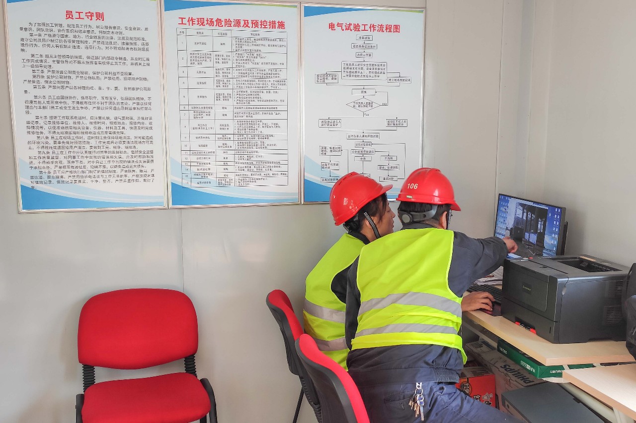 現(xiàn)場(chǎng)文明作業(yè)方面,結(jié)合公司精細(xì)化管理要求,施工現(xiàn)場(chǎng)繪制了詳細(xì)的“五牌一圖”,從工器具擺放、員工守則設(shè)置、現(xiàn)場(chǎng)危險(xiǎn)源及預(yù)控措施制定,到電氣試驗(yàn)工作流程等作業(yè)標(biāo)準(zhǔn)化執(zhí)行,均嚴(yán)格各項(xiàng)管理制度進(jìn)行。