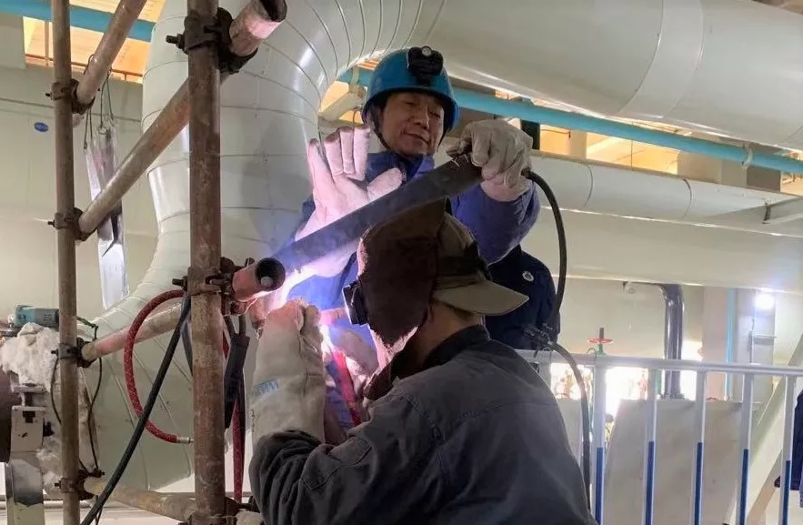到達(dá)當(dāng)天,全部人員馬不停蹄,即刻投入到緊張的檢修工作中。此次#1號(hào)機(jī)組的臨修,任務(wù)重、項(xiàng)目繁雜,除氧器取樣門焊口、爐送風(fēng)機(jī)供氣母節(jié)漏點(diǎn)焊補(bǔ)、石膏旋流滲流管焊接……每一項(xiàng)任務(wù)都是難啃的“硬骨頭”,每一項(xiàng)工作都需要和多個(gè)專業(yè)協(xié)同進(jìn)行,但大家沒(méi)有一絲懈怠,一直全身心進(jìn)行工作,即使春節(jié)期間也沒(méi)有停工,每一名工作人員始終兢兢業(yè)業(yè),從預(yù)熱、焊接、到熱處理、射線檢測(cè),每一個(gè)環(huán)節(jié)都做得一絲不茍、每一道工序都力求做到精益求精。