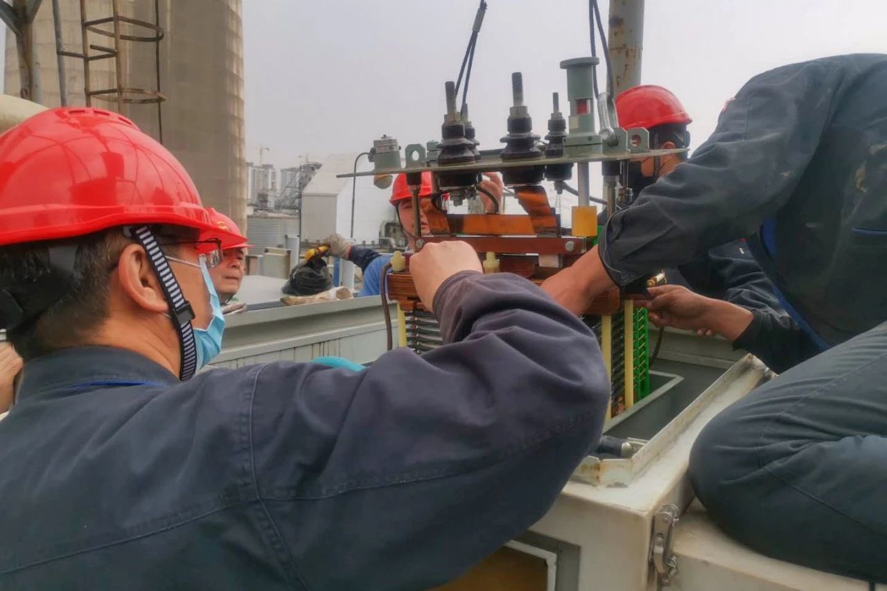 4月6日,控制班開始了#5電除塵222電場變壓器的吊芯檢查。經(jīng)過線圈檢查、油色譜分析及耐壓試驗等工作,發(fā)現(xiàn)變壓器內(nèi)部存在著嚴(yán)重缺陷。班組立刻組織人力、準(zhǔn)備備品,僅用時2天就完成了更換工作。