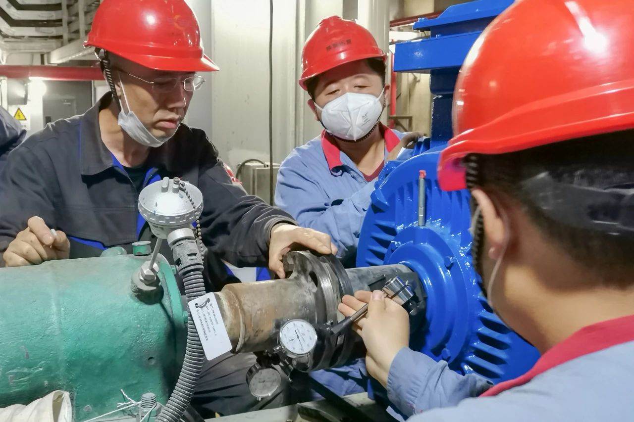 8日的實操比武項目是電機對輪找正。賽場上,選手們個個競相登場,利用角尺、塞尺,精益求精測量聯軸器端面的不平行度;人人使出渾身解數,架起百分表,一絲不茍測量聯軸器的不同心情況,充分展現了精湛的操作技藝和良好的精神面貌。