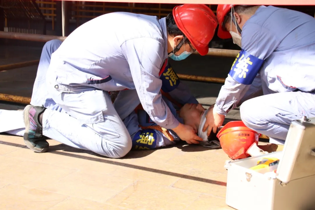 演練過(guò)程中,職工發(fā)生觸電及高處墜落事故,項(xiàng)目部立即啟動(dòng)應(yīng)急預(yù)案,救援人員第一時(shí)間趕至現(xiàn)場(chǎng),對(duì)受傷人員進(jìn)行緊急處理,并及時(shí)聯(lián)系專業(yè)醫(yī)護(hù)人員趕赴現(xiàn)場(chǎng)進(jìn)行救援。