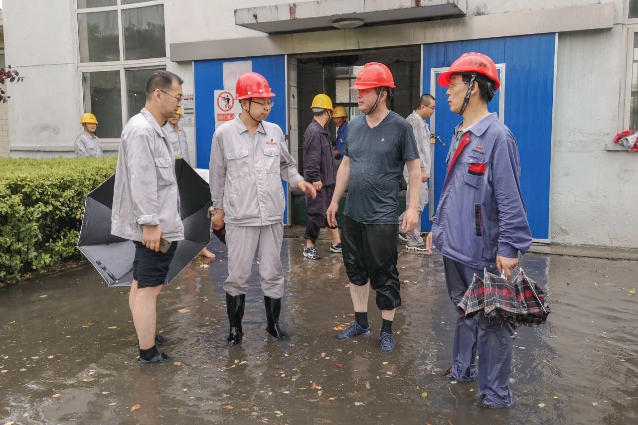 17:35,救援小組趕至防汛重點(diǎn)部位——燃運(yùn)油庫門前時(shí),洶涌的積水已達(dá)600mm。瓢潑大雨中,一組人員在油庫值班室、供油泵房等區(qū)域設(shè)置防水擋板,搬運(yùn)沙袋進(jìn)行封堵;另一組緊急加裝潛水泵、疏通排水渠道。緊緊關(guān)頭,渭電公司副總經(jīng)理王聯(lián)盟、總工程師王軍泓也來到現(xiàn)場查看險(xiǎn)情,指導(dǎo)搶險(xiǎn)工作。
