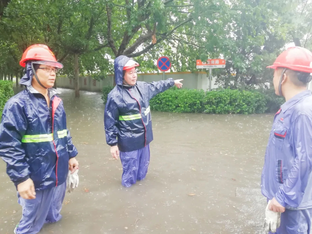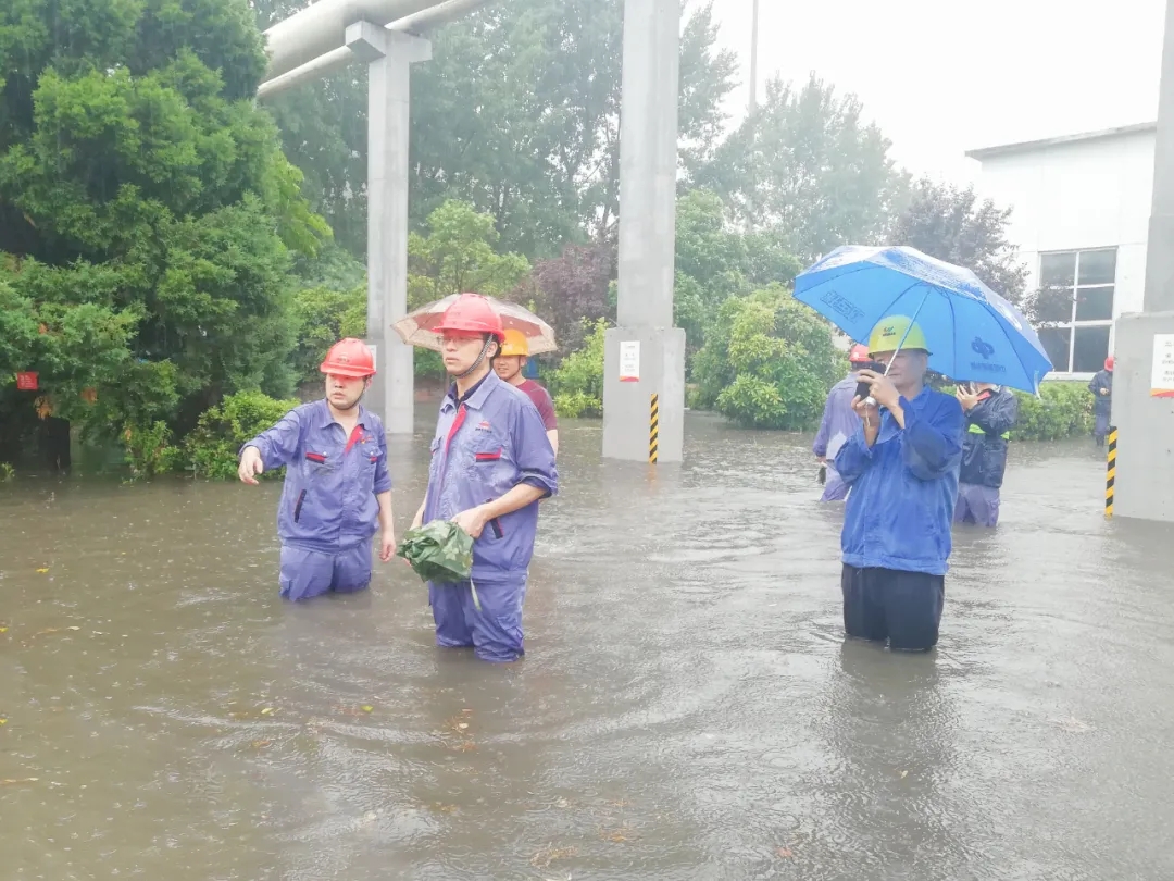 瓢潑大雨中,燃輸區(qū)域瞬間水深超過(guò)一米,項(xiàng)目部應(yīng)急小組成員來(lái)不及換上雨衣雨鞋,就跳入齊腰深的積水中,排查險(xiǎn)情,疏通水道。