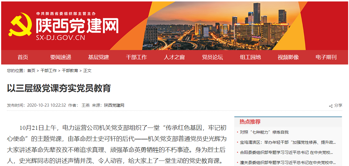 從2019年起,電力運營公司黨委探索性開展班子成員、黨支部書記及普通黨員三級黨課,增強黨組織活動和黨員教育管理工作的吸引力和實效性,在實踐中蹚出黨員教育管理的新路子。