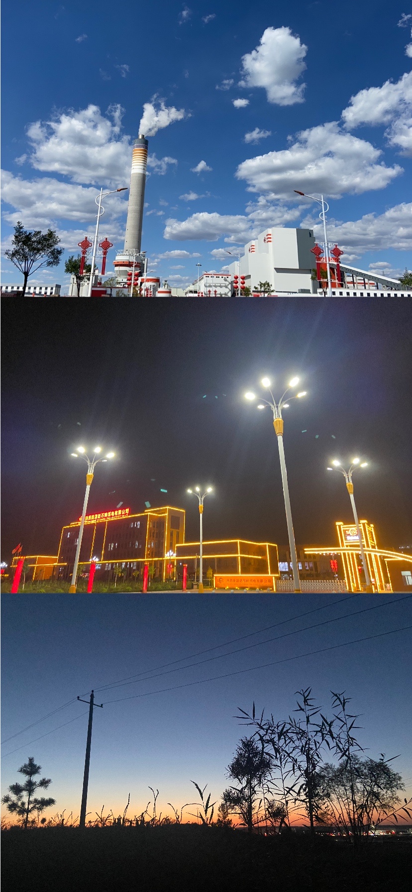 這是做避雷器帶電檢測和電動工具檢測時的趙石畔煤電,人們說的“云淡風(fēng)輕”便是如此吧。繁星點點與辦公樓外的燈帶交相輝映,月光下的趙石畔煤電就像是毛烏素沙漠上的一顆明珠。我想,這美好的一切離不開我們項目部人員的辛苦付出吧,是他們點亮了這片夜空。